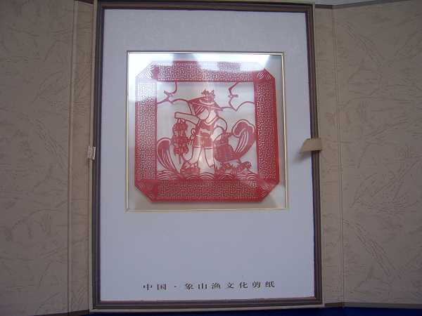 一次应邀,参加家乡的一个研讨会.会议的纪念品之一,是象山剪纸大师谢才华先生的作品.