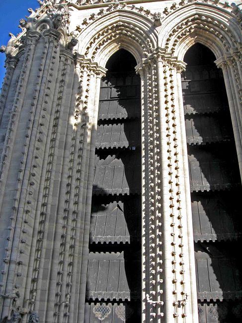 圣母院的侧面,哥特式建筑的大花格窗,就是教堂里面的彩玻。