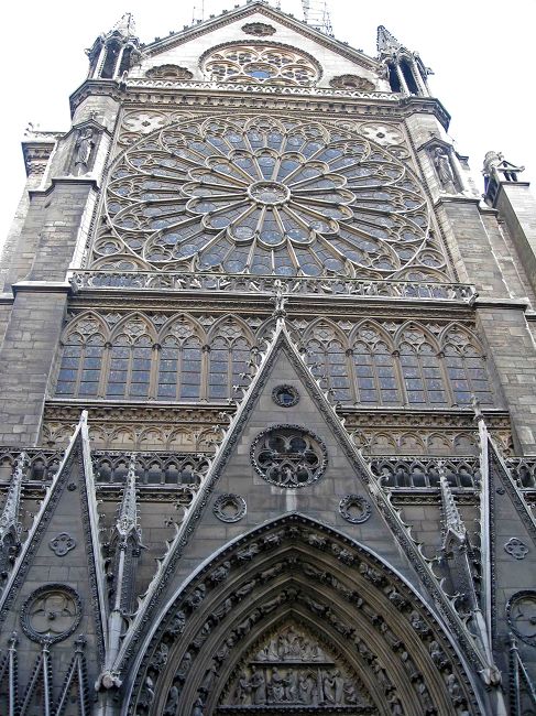 圣母院正门,一坐一右两个塔状就是钟楼,不知道《巴黎圣母院》里的那个丑陋却心地无比善良的敲钟人的灵魂,是在哪个钟楼里飘荡。