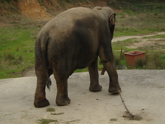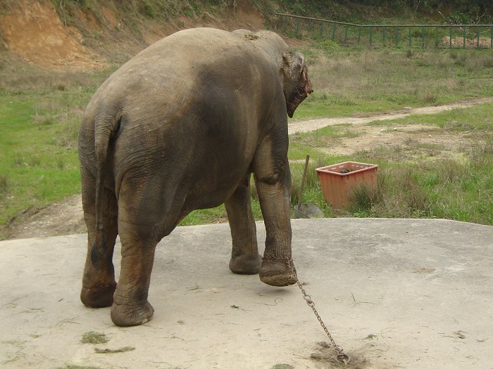 对动物来说也许这是不应当的,可这也要看是在什么情况下的动物,在大自然中是残酷的,可动物园就不一样了吧。也许这个动物园对动物来说,就如人类对监狱一样。人为什么会到监狱去?动物为什么会到动物园去?人去是违反了当局的法规,动物呢?也许也是违反了自然的规则——见到有人来抓为什么不快跑呢?反正,动物进了动物园,那就是只有认命了。不要去可怜这头象了,人也是这样的,在不适合自己的环境中,小小一根铁链就能把你控制,可能这样的象也不用去自己觅食的,也许他正享受着呢!虽然我们看上去他已经很不象一只健康的象了,也许他自己却不这样认为!