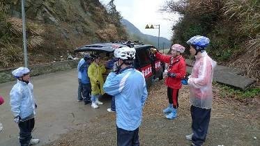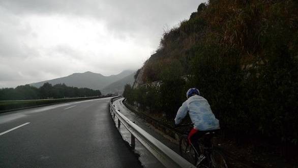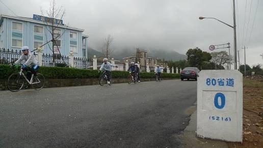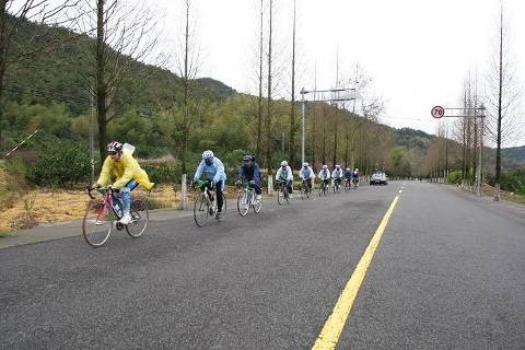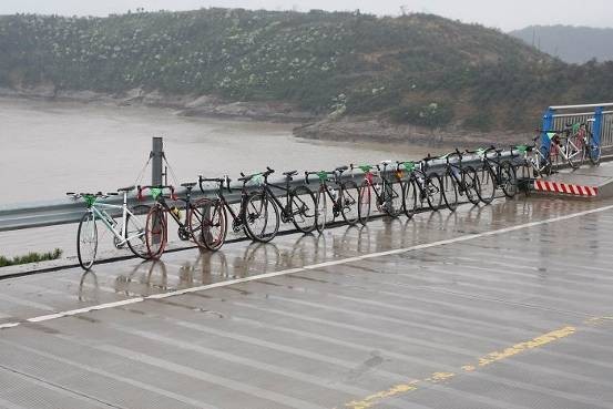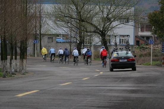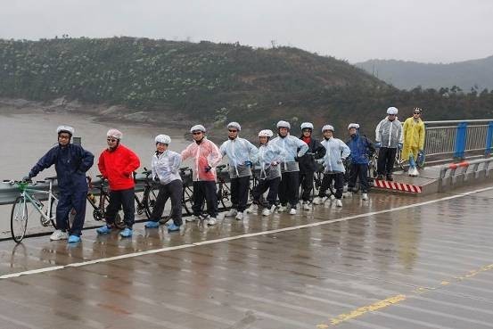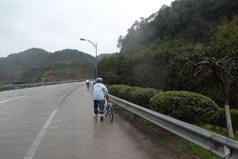 我相信八爪鱼所说的,即使是推着车走,他们也不会上后勤车。到隧道口进宁海县城的时候,先导车进行收队,等待最后一位车友到达。虽然大家身上都湿淋淋的,又冷又饿,听到我们说要收队后才能进县城时,却没一个人反对。
