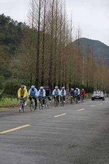 中午在龙江农庄用过餐,在新修柏油沿海湾公路上狂飚过后,开始上下爬坡之旅。当这帮很少,甚至有的七八年没骑过自行车的团友们努力骑到山顶时,内心的激动感染着我们。开始以为越过了最难的坎,却发现越到后面越困难。除了向他们努力坚持的精神,互相打气,互相关心的团队精神表示敬意,我不知道还能用什么词语来形容当时做为一个旁观者的心情。