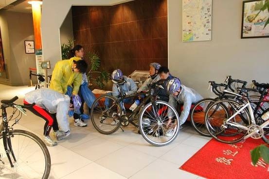 傍晚六点,全团车友冒着绿豆一粒大的雨滴,浑身湿漉漉安全顺利抵达宁海县城,急忙把他们带到酒店洗漱,把姜茶点心挨个送进房间,我们工作人员的心才稍稍安定下来。