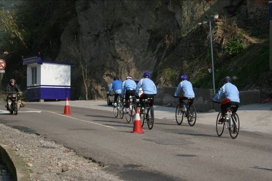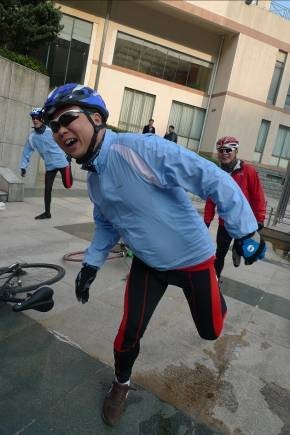 丝袜男今天一直跟在队伍最后面陪伴大家爬坡。。。在我们开玩笑说没给他拍照的时候,其余的车友给他另取了个外号叫‘神推手’。