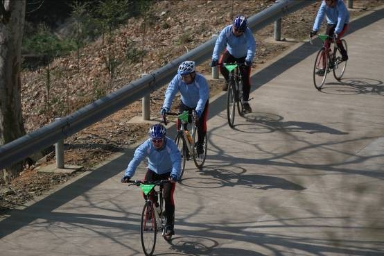 实际上在我们这群人中都是普通人,平时运动量也不大,比如八爪鱼一般喜欢和新车友骑骑车,玩一玩,也就三十多公里,没有像这样骑过车。。。比如老沃,他也骑车骑得少。。。。老朱最喜欢下班后抱遥控器看电视。。。。
