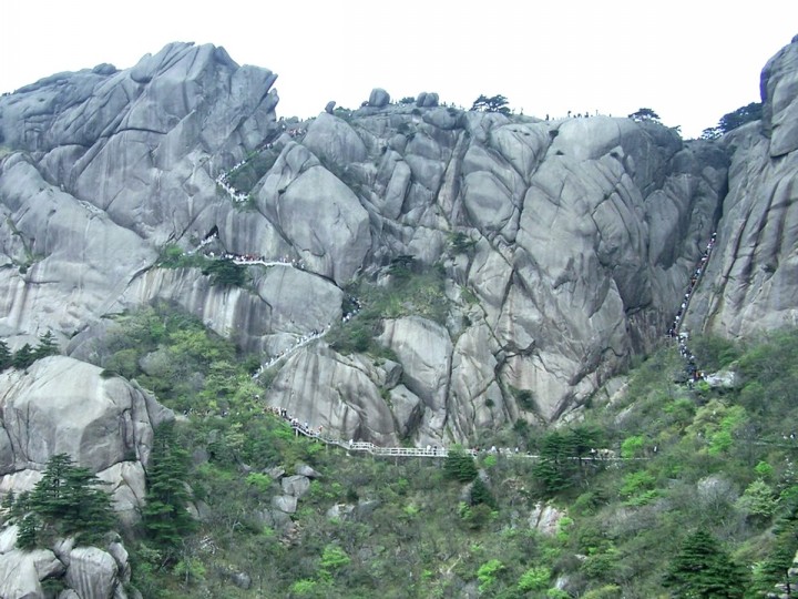 255接下去要去的地方叫鳌鱼峰、上峰顶有二条路、右边一条是近道、路是直上直下、可看景点多一点、左边一条由于弯曲多、相对平坦一点