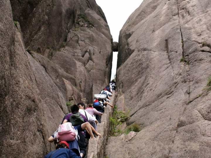 262一线天虽很陡、因二边有扶手可抓、双手双脚齐使劲、加上走得不快、也不怎么累[1]