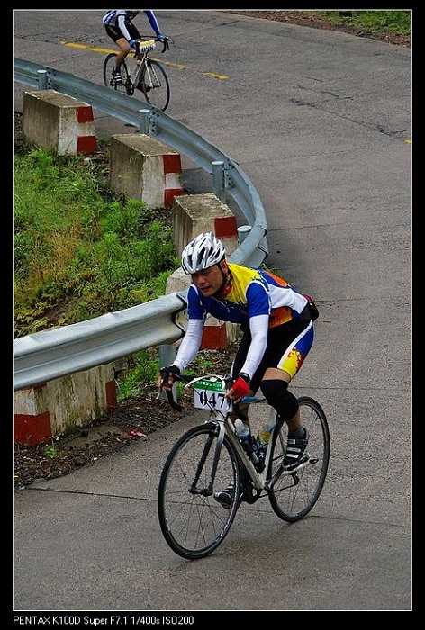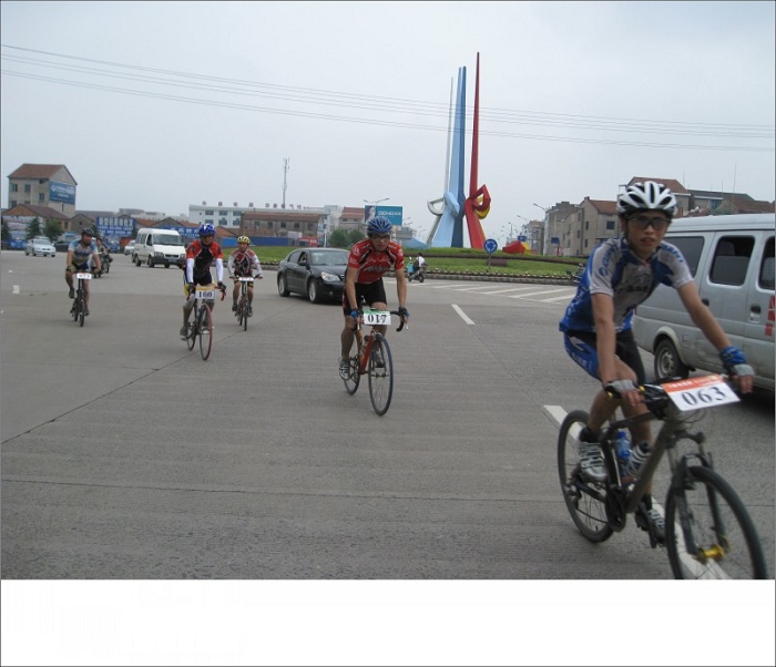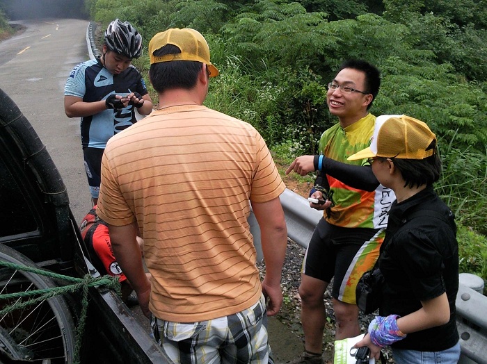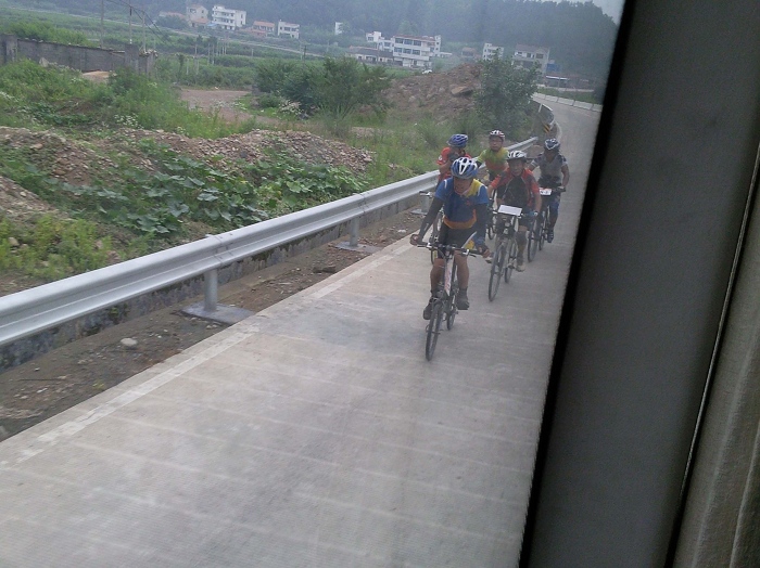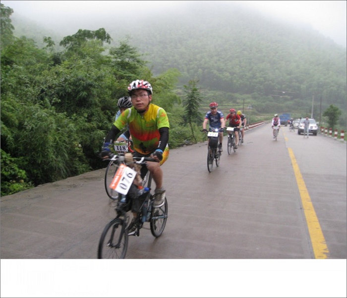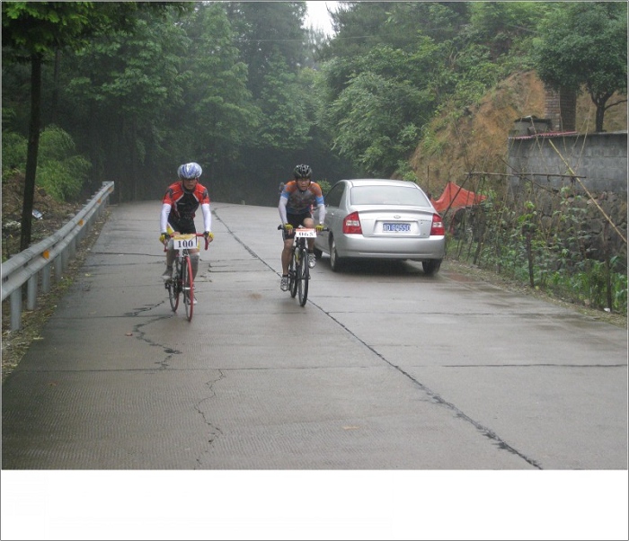 这图是我摔车后整理后赶大部队,可以一个人的骑行那是累啊,途中收容车试图五次想收容我,都让我给冲关跑了,当图上这个地方超了那些老外后,收容车就再没有赶上过我了,我也顺利在第一个集合体找到了大家。