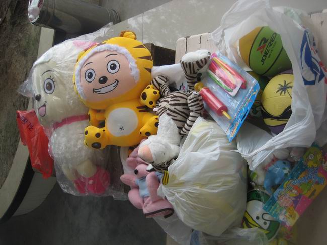在活动前一天,我和两位朋友去超市买了糖果、玩具等;另外,我还带了美洋洋、虎洋洋等4个娃娃,小朋友们肯定会喜欢。看着他们开心的样子,我也很开心!