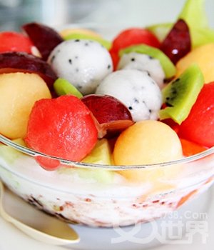 2、锅内加入水适量,放入所有的水果丁,用大火烧开后转小火熬制。待水果煮烂后加入白糖,最后淋入水淀粉,边淋边用勺推,烧开后装入汤盆内放入蜂蜜即可食用。