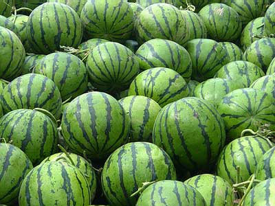 二是看瓜的纹路。所谓人有人相,瓜也有瓜相一般,好的西瓜纹路都很清晰,表皮稍有凹凸不平的波浪纹,整个西瓜看起来色泽比较均匀。