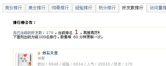好友数排行第一