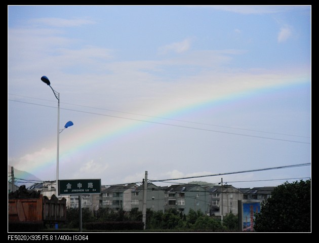 好长的一条彩虹!!! 真美!!! N久未见了!