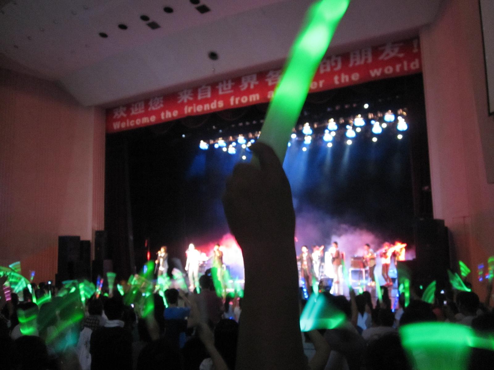 4,我们是演唱会真正的焦点之一,那是相当拉轰!!不但参与整个演唱会的安保工作,更显眼的是我们签过名的硕大“象山粉丝团”牌子,它在演唱会上空挥舞,手手相传,独领风骚!群员们有喊“醉乐”(群员)的,有喊“小P”的,交织在一起,一浪高过一浪!