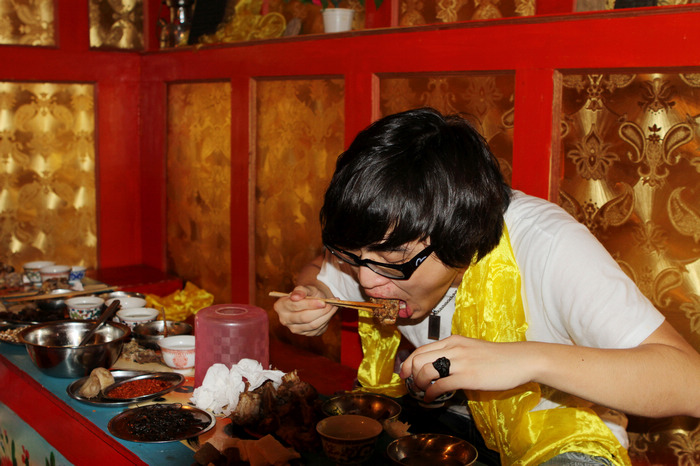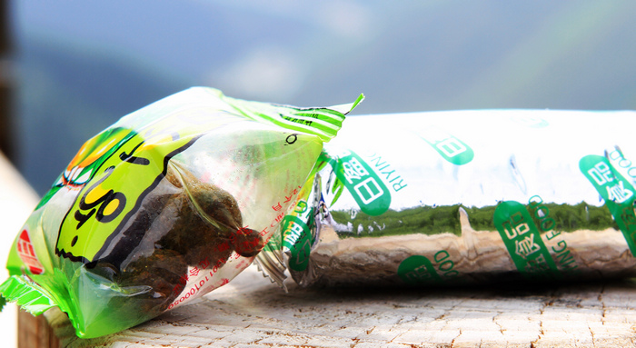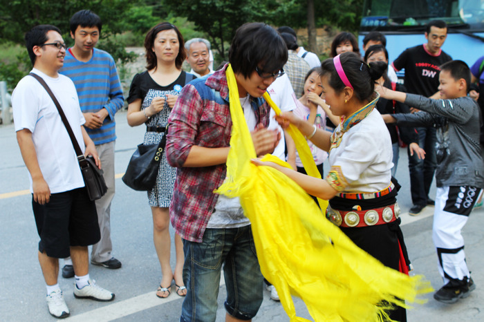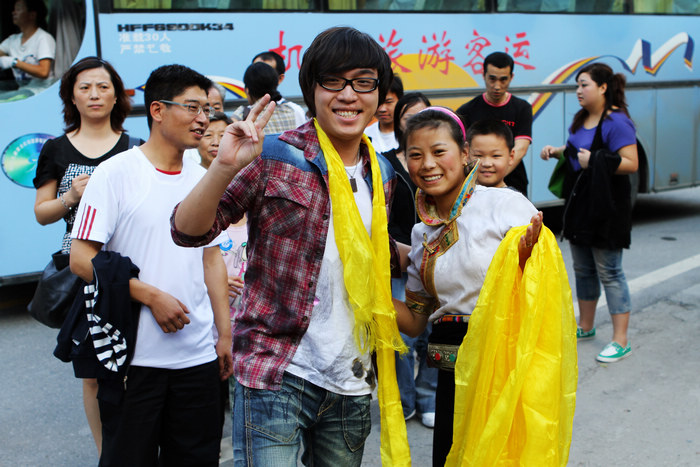 总共6顿主餐,所谓的8菜一汤团队标准菜,虽然在不同餐馆,但菜谱餐餐都一模一样,而且味道真的难以入口。还有那个米饭,可能由于海拔高的原因吧,吃到嘴里才深知什么(用阿拉象山人的方言)叫“胀硬骨粒”,真的难以入喉。呵呵…也许是团队标准太低了吧。 |