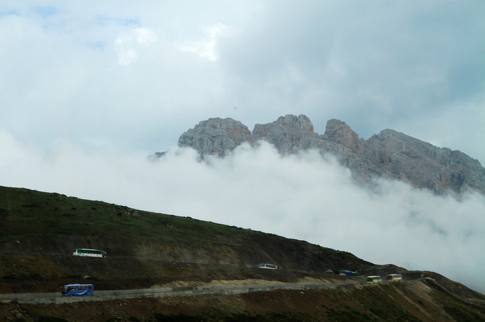 九寨沟去黄龙景区要翻越一座海拔4千多米的高山,正常会出现大雾迷漫的恶劣天气,出现时能见度不到10米,增加行车风险。我们第三天在游完黄龙景区,当晚8点从黄龙景区返程九寨沟途中,在翻越海拨4000多米高山时,就碰上了这种极端天气。越往上爬行雾就越大,能见度极差,几乎看不清5米前面的道路情况,我们整车游客的心都提到了嗓子眼。亏得驶机车技好,经验老道才得以平安下山。同时部分人巳出现了高原反应,头晕、胸闷…造成身体极度不舒服。