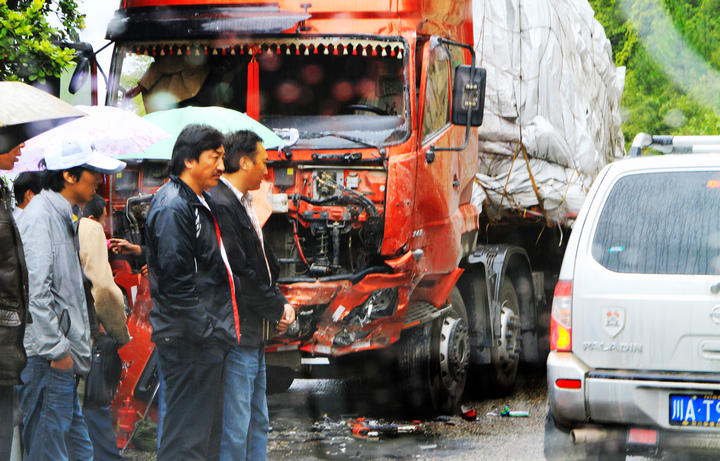 今天从八一镇出发要到达心仪的拉萨,大家非常兴奋。加上路况好,整个车队一路你赶我追,大家都无心去欣赏沿途秀美的尼洋河风光。呵呵好欢不长,前方出现严重堵车,这一堵就长达二个来钟头。在焦急等待中得知,前方一辆大客下坡右弯时,由于车速过快未能正常走在自己的车道,与刚好上坡正常行驶在自己车道的大货车迎头相撞。导致两车驾驶员均夹在车头驾驶室内身体严重受伤的交通事故。