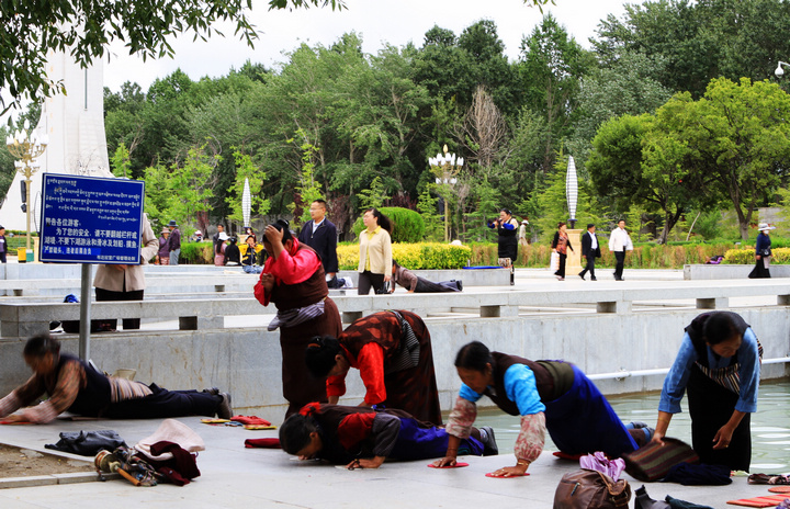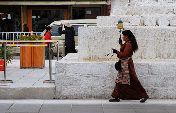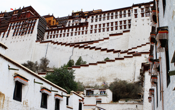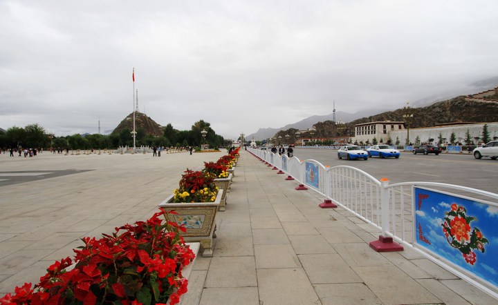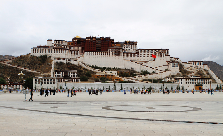 当我们车队进入拉萨市区,领队持意引导车队经过布达拉宫前的大街,让大家第一次近距离感受它的宏伟气势。 |