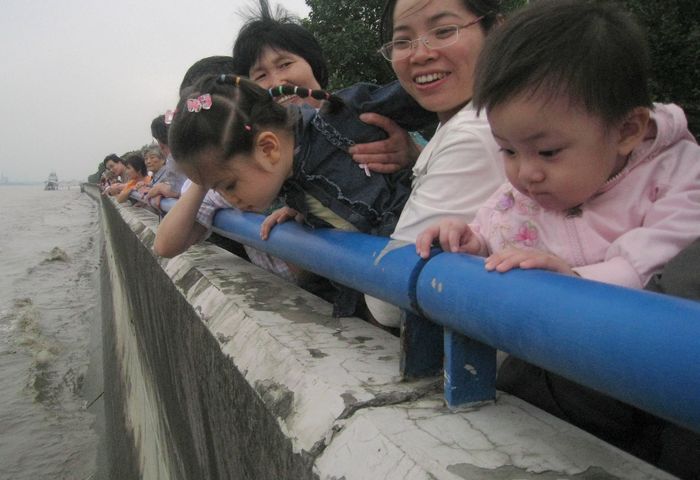 今天下午,我们全家人到复兴大桥边看钱江大潮。来看潮的人可多哩!