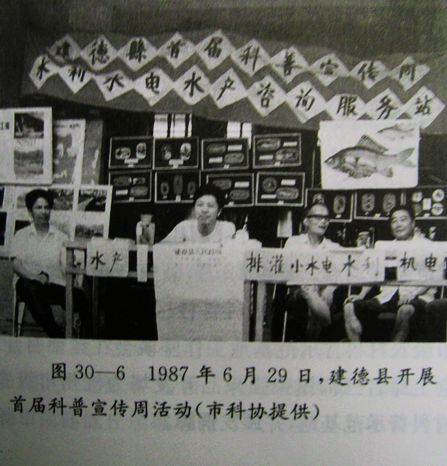 原来数年前市科协编撰《建德市科协志》征集照片时,我提供了一张1987年县水利学会、水产学会会员参加首届科普宣传周的照片。