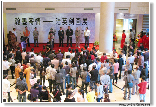 “翰墨寄情——陆英剑画展”在国际大酒店国香厅开展。县委常委、组织部长林雅莲致欢迎辞,副县长林荣根主持开展仪式。浙江省、宁波市和奉化市等书画界代表出席开展仪式。
