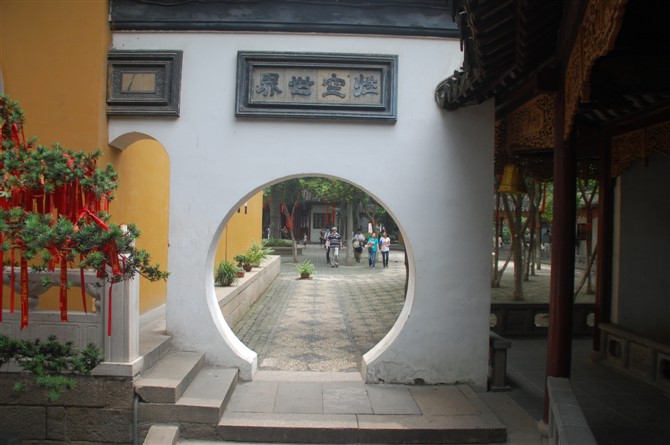 过枫桥古镇的石板路小巷、或是站在枫桥桥头,抬眼即可见碧瓦黄墙的寒山寺坐落在绿树丛中,院内青松翠柏,曲径通幽。