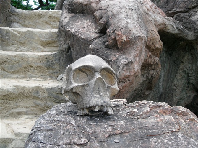 在一片桃林门口不知哪个游客放了一个骷髅,是我一下子就想起了梅超风。