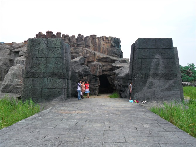 影视城中的活死人墓是最具“神雕”特色的景点,它利用自然山洞与人工修凿相结合,建造出自然多变的出洞效果,营造出迷离奇幻之感。