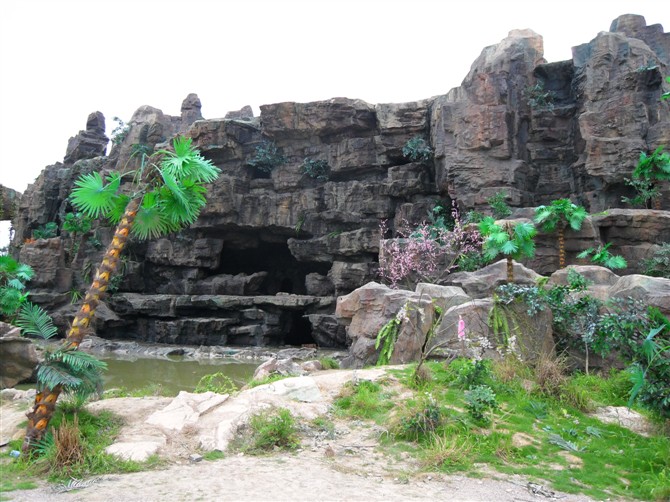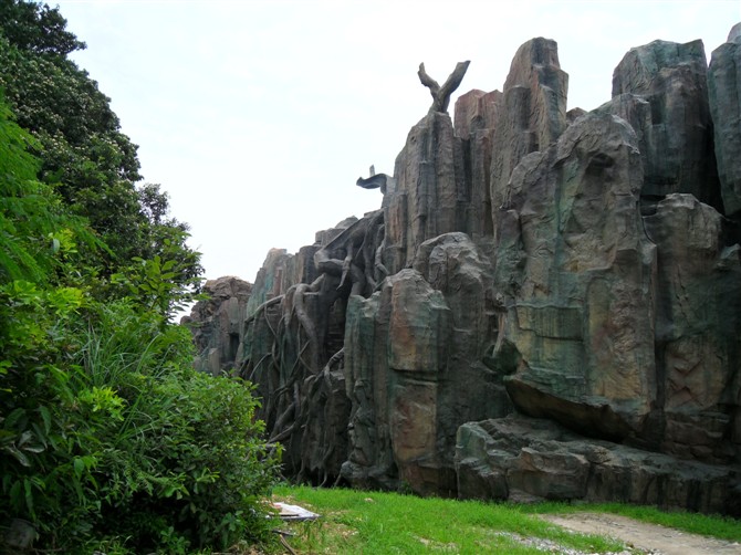 看似都很逼真,其实这些都是假的,都是混凝土浇筑而成的。