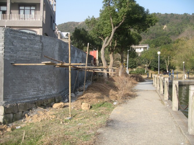 作为这个城市一个市民,早已习惯一天两次的锻炼,每次都会路过正在修建中的东谷湖宾馆后面那条湖滨路,这两天发现,东谷湖宾馆围墙砌在了原来的路基上,让本来就不大的道路变得更加窄小,这必将影响广大市民休闲出入。