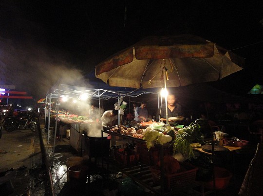 这周边的几条街都是烧烤摊。昏黄的灯,高低不平的桌子,还有操着海南口音的小妹。。。