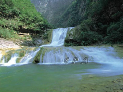 离开狐仙洞继续前行,便来到青龙峡尽头。在悬崖峭壁上,有一个巨大的天然石台。石台坐北朝南,台中间有石灰岩天然溶洞,洞口有莲花状钟乳石,泉水从洞口喷涌而出,形成喷泉,喷泉状如莲花,故名莲花台,莲花台与谷底落差100余米,随年降水量变化,喷泉莲花初萌于春,盛开于夏,衰落于秋,枯萎于冬。同时随日照强度变化,泉水呈现出白、赤、橙、黄、绿、青、蓝、紫八种颜色,好似盛开的八色莲花,从谷底望去,煞是好看。