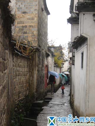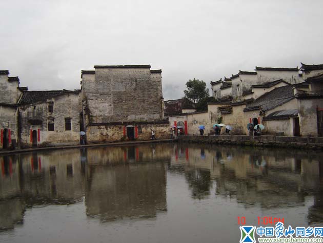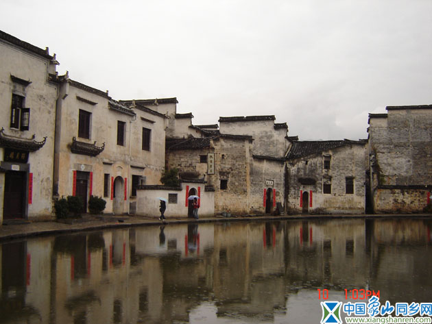 村落面积19.11公顷,呈"牛"形结构布局,被誉为当今世界历史文化遗产的一大奇迹:巍峨苍翠的雷岗当为牛首,参天古木是牛角,由东而西错落有致的民居群宛如庞大的牛躯。以村西北一溪凿圳绕屋过户,九曲十弯的水渠,聚村中天然泉水汇合蓄成一口斗月形的池塘,形如牛肠和牛胃。水渠最后注入村南的湖泊,俗称牛肚。人们在绕村溪河上先后架起了四座桥梁作为牛腿。一幅牛的图腾跃然而出。这种别出心裁的科学的村落水系设计,不仅为村民解决了消防用水,而且调节了气温,为居民生产、生活用水提供了方便,创造了一种"浣汲未防溪路远,家家门前有清泉"的良好环境。 |