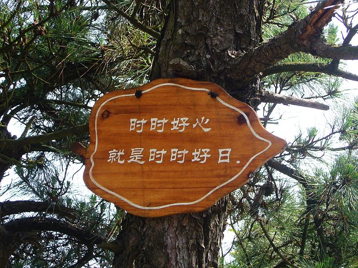 一路上到处都可以看到这样的小木板,上面写着不同的人生悟禅启示语,让你悟禅了道