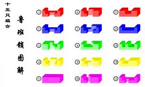 后来,鲁班锁的材料不仅是木头,也不仅是6根,种类越来越多:7根的、8根的、9根的、15根的......