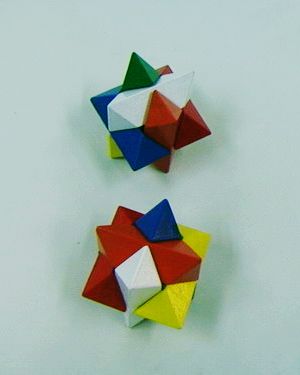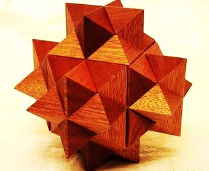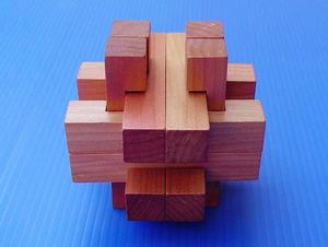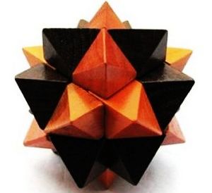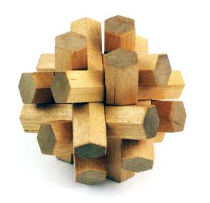 现代的鲁班锁不仅根数与原来的六根大不相同,连形状也大变——原来的方形柱变为三角形、六角形柱。