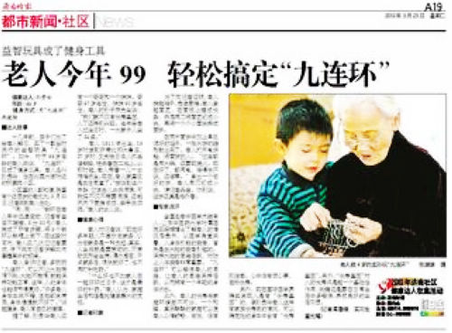 九连环曾征服古今中外无数爱好者。2003年3月8日,国人王仲斌以3分57秒成功解出九连环,载入吉尼斯世界纪录大全。