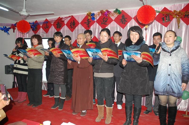 女:首先我们要向报德寺的全体法师和在场的所有师兄致以新年的问候。