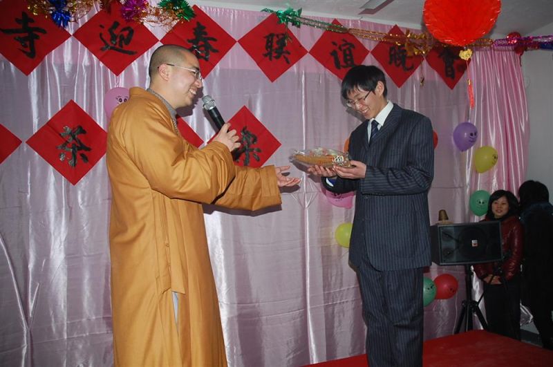 男:在这辞旧迎新的团圆佳节,感恩报德寺常住供养庄严的道场让我们相聚在一起,举办这次迎新春联欢晚会。