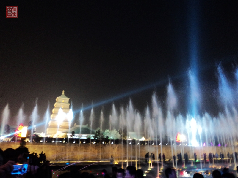 周六下午在大雁塔边上转悠,晚上边上吃了个饭,晚上继续逛,大雁塔的音乐喷泉号称亚洲最大,可惜晚上到的时候节目已经快结束了,确实很壮观,那个人山人海,卡片机效果很一般,只能看看罢了。