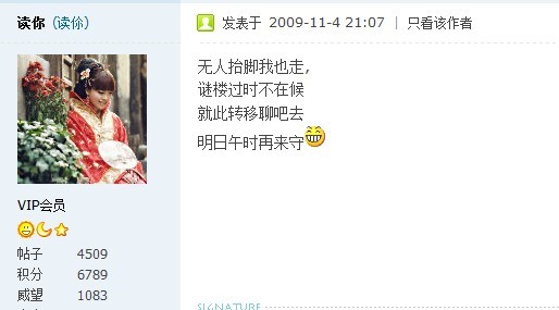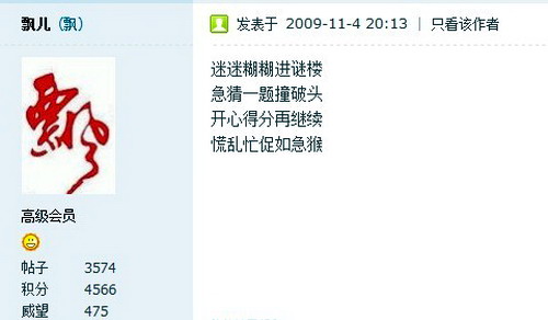 我看到小芳刚才为了200楼,就打了个“我”好像 飘儿 发表于 2011-4-15 23:00