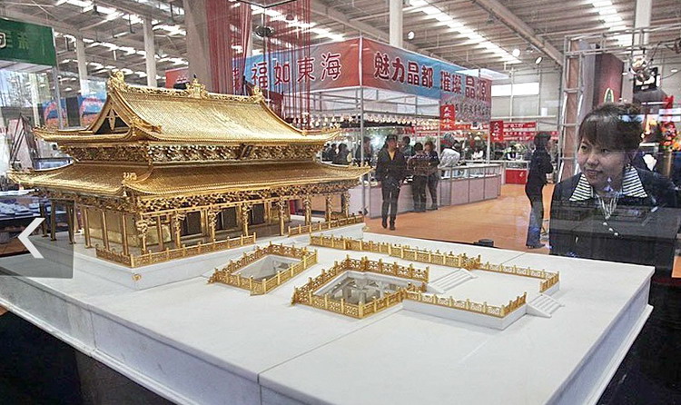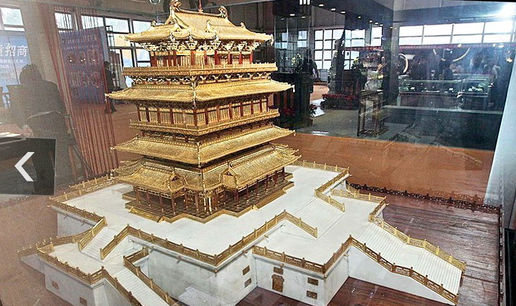 用了40千克足银并镶嵌宝石546粒打造而成的中国重点文物保护单位晋祠圣母殿大型工艺摆件。