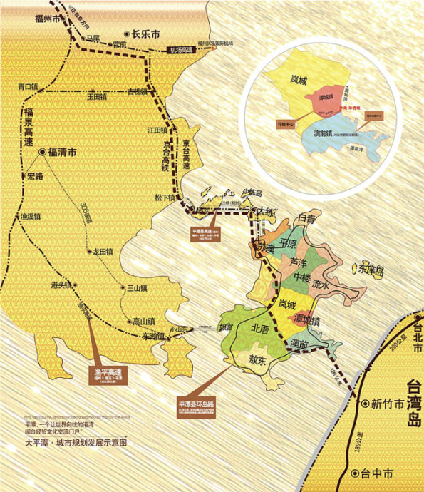 从平潭县到福州距离是120公里,从平潭到台湾新竹市的距离也是120公里,平潭位于中间点。正因为此,国家希望充分发挥平潭的地理优势,将平潭打造成京台大通道的重要枢纽。