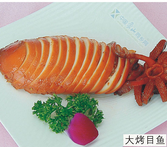 5、目鱼切厚片,按照原形摆入盘中,浇上一半汤汁即可。