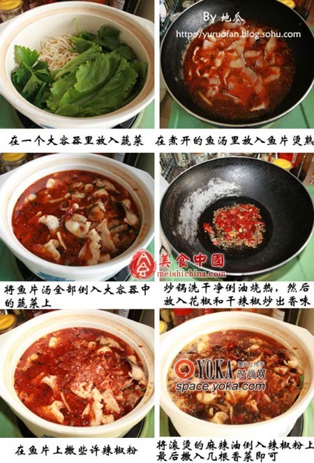 川菜中的一道名菜。它是连汤一起上的,“水煮鱼”跟它有点相似。一般鱼品种用青鲩,草鱼,胖头等。