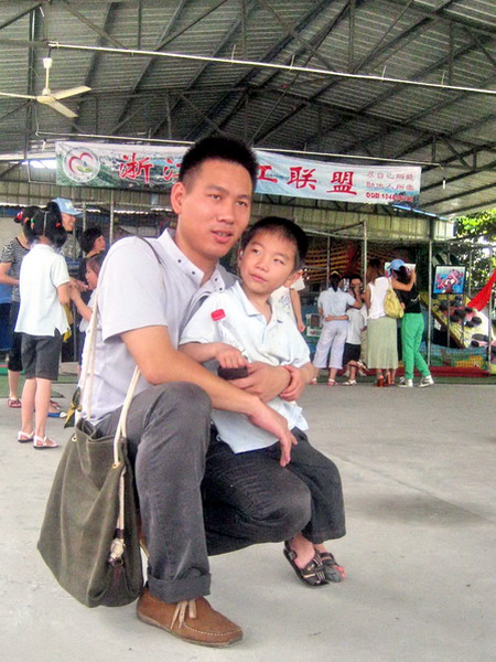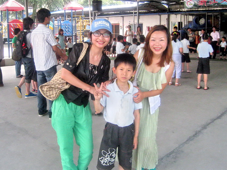 与孩子合影