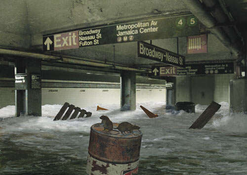 没有了持续工作的抽水系统,纽约市的地铁已完全浸没在水中。