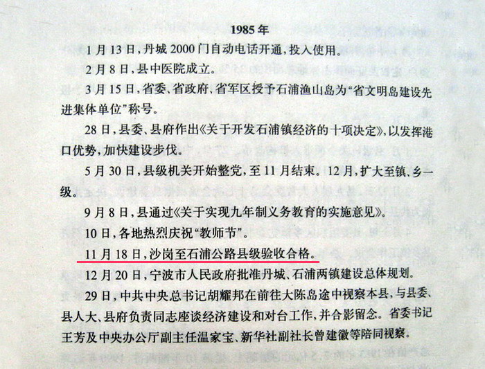 下面是1987年出版的《象山县志》里,大事记与第十章第一节(交通公路)的记载。