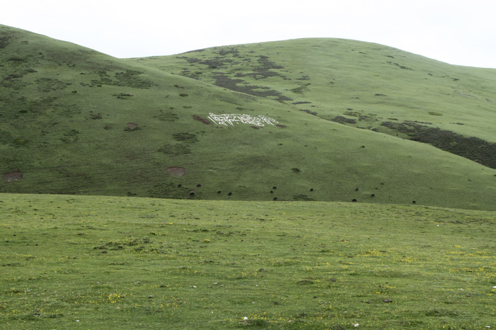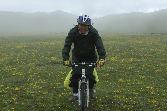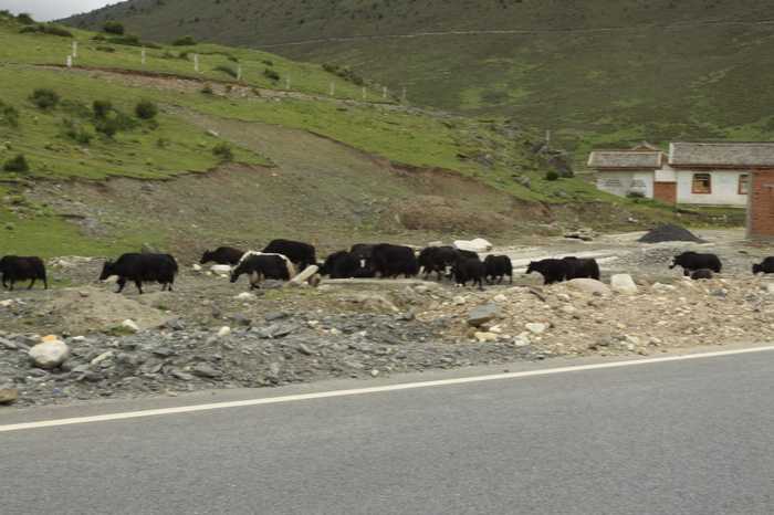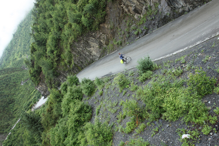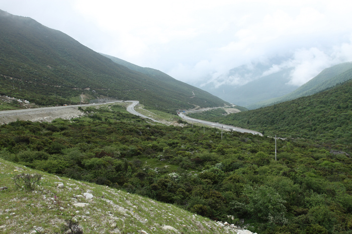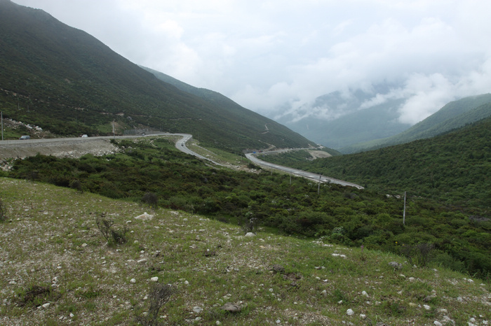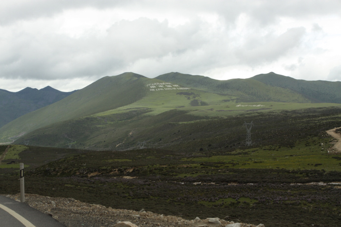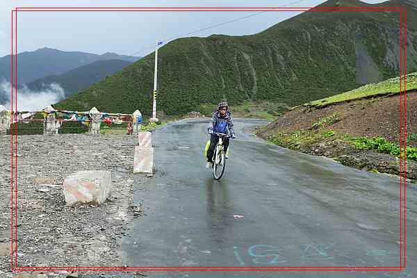 昨天下午的高反严重起来了!经过一夜的休整,头稍微有点好了,但今天起床以后的动作明显的要比昨天要慢一点了,因为在折多塘3300多米的海拔,动作稍微大点或激烈点,心跳明显地加快很多!所以今天开始动作一切都要慢半拍,没有办法!本人是第一次从海边上到高海拔的地区,心里没有底,还是小心为妙!就这样我们从折多塘开始出发了!出来就开始爬坡,爬坡23公里,不陡,但坡长,这也是川藏线上的第一座山—折多山。爬坡在整个折多山的路上,只要有涂鸦的地方,车友们把这个字,发挥得淋漓尽致,有的将坡比作亲人,有马路上写着“坡!我的妈啊!我来抱你了”有的将坡比作敌人“我将你踩在肢下,你将一直在我的脚下”有的将坡比作“坡啊坡!坡何时休”各种各样的涂鸦,可以看作一种骑行的文化,同时骑友们把这个文化尽自己的想像力尽情的发挥着,折多山海拔4239米,从今天开始,也将真正地进入高原地段,高原地貌完全地显现给我们,山上绿绿的小草,成片的草甸,河水静静地流淌,牦牛悠闲地吃着草,藏式的居民房子零星地散落在不同地角落,天堂地的地方,人间的仙境,我们来了!我们也将经历过。
