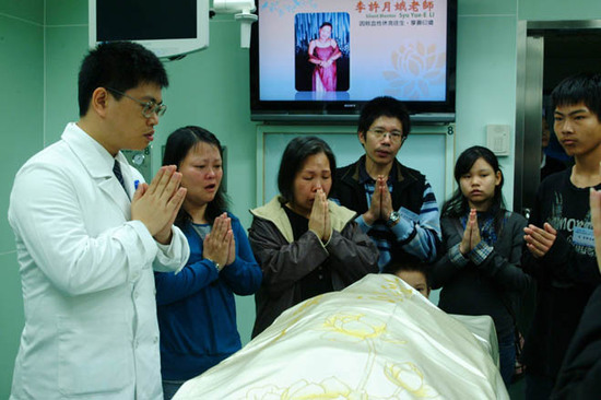 在佛教仪式结束后,由上课学生掀开遗体的盖布,让家属见捐赠者最后一面,家属思念亲人、泪流满面的情景令学生感到遗体得来不易。而家属对社会的爱心,更深深感动着学生。一位家属曾告诉学生:“我宁可让你们在我死去的亲人身上试划20刀,也不愿你们将来当医生时,在任何病人身上划错一刀。”来自捐赠者和家属的期盼,点点滴滴都影响着学生日后的行医观——尊重生命、尊重病人。
